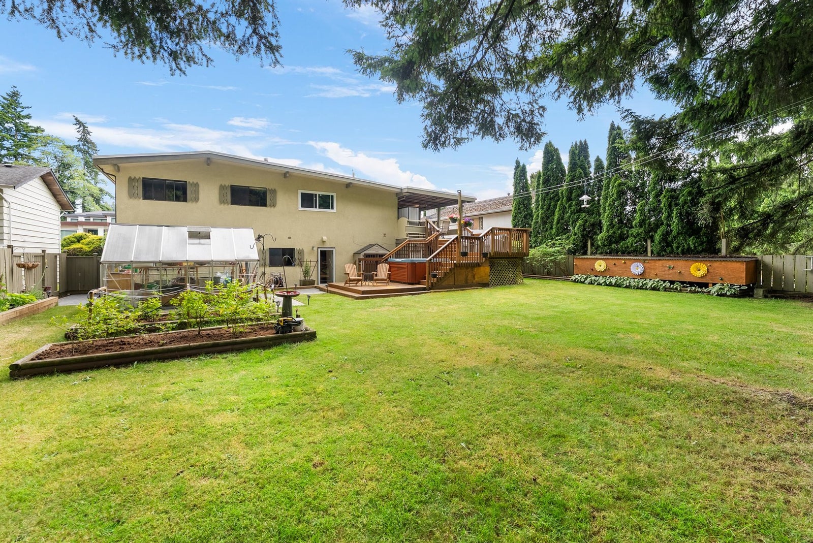 Nestled within the heart of North Delta, this 5-bedroom residence sits on a sprawling 1/2-acre flat lot. The renovated kitchen on the upper level offers stainless-steel appliances, granite countertops, & custom-crafted cabinets. Three bedrooms on the main floor and an additional two below, complete with a separate full-sized kitchen, this home seamlessly offers functionality for multi-family living or a suite. Expansive decks offer a picturesque backdrop for year-round outdoor entertaining, enhanced by a charming greenhouse & luxurious hot tub. Conveniently located within walking distance of Chalmers Elementary, Burnsview Sec. & transit. Neighbouring house/lot for sale R3040219 (22,949 sqft.) Sold separately. Great development potential with both lots combined.